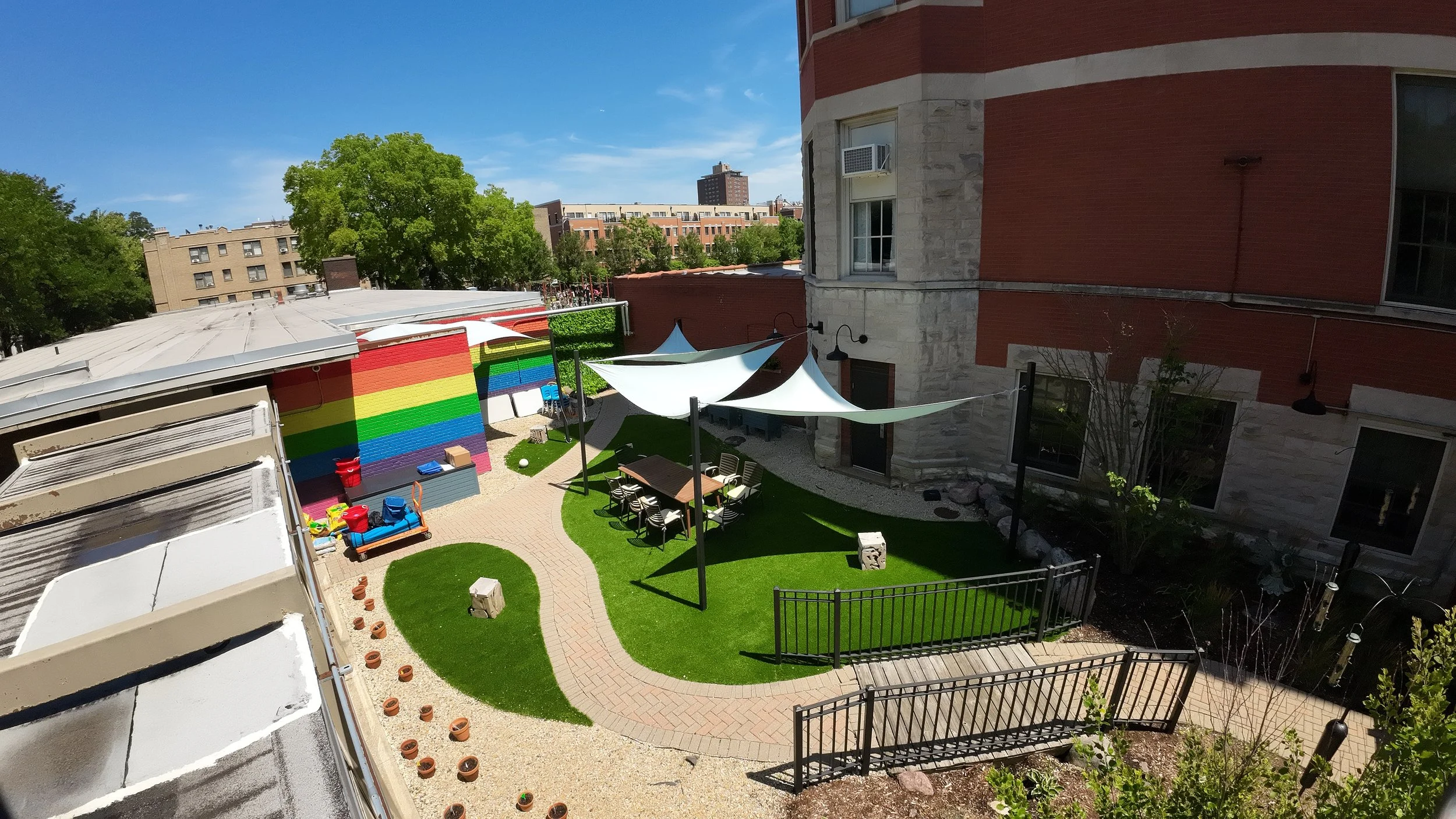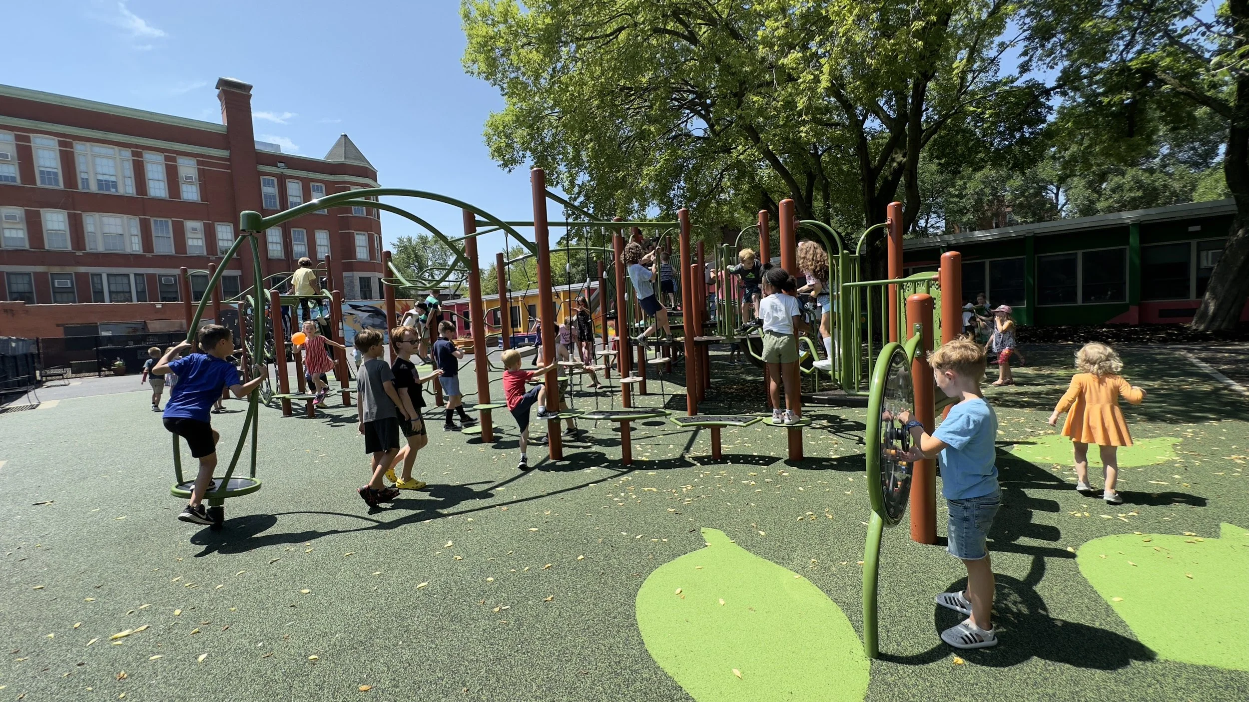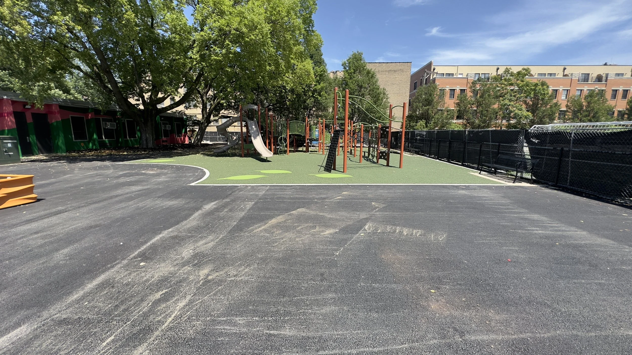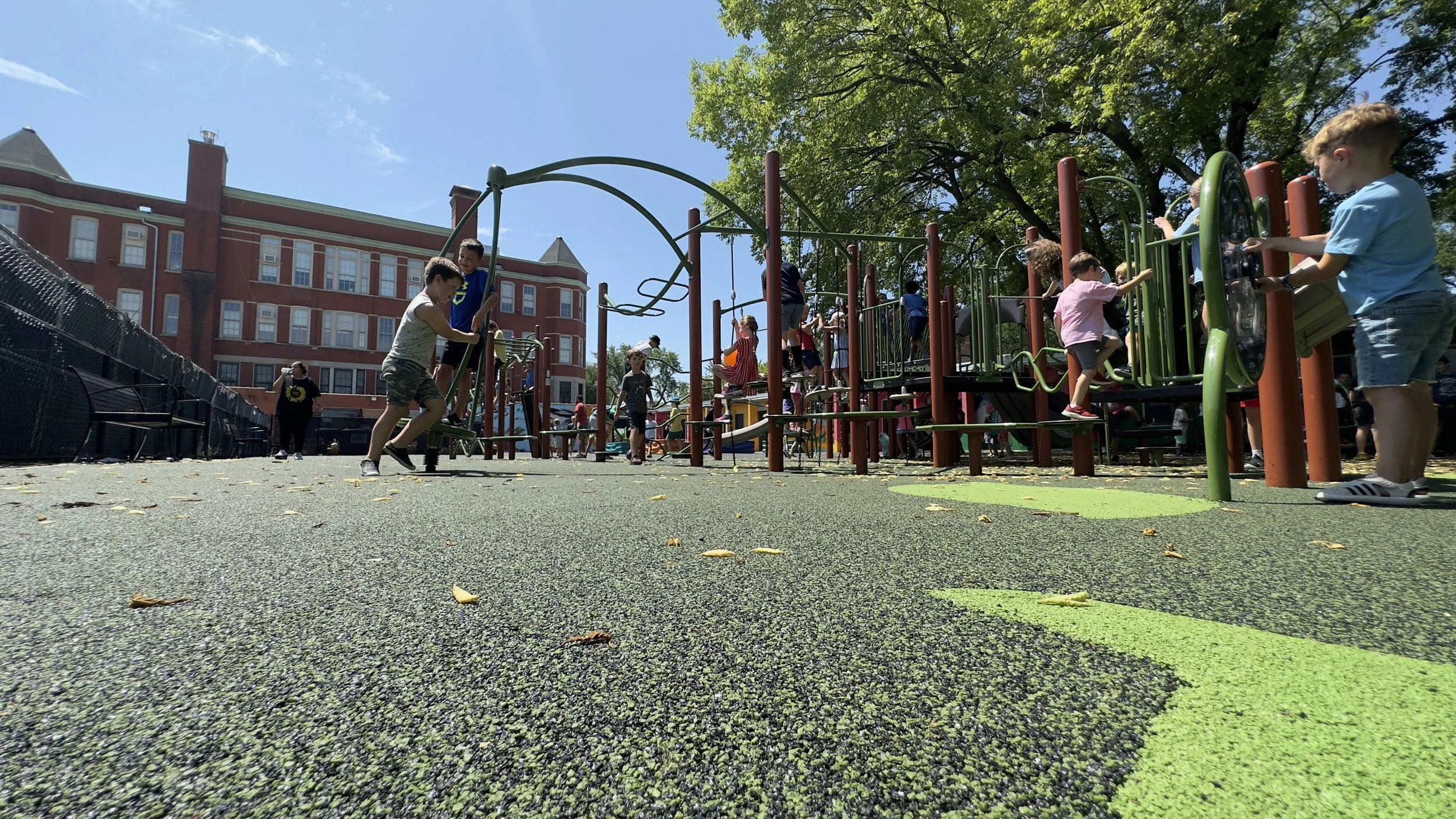 In October of 2023, the project was completed, and the playground was opened for student and neighborhood use. The finished product includes a modern playground with a rubberized asphalt surface, accessible paving and ramps, a sensory panel, and other accessible elements for exploration and learning.