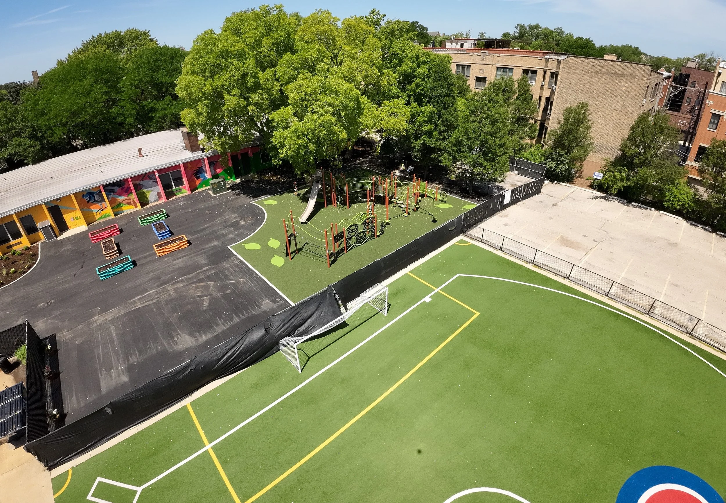 The playground renovation and James G. Blaine Elementary School began in April 2023, as part of a larger program of outdoor space renovations that Cordos completed during that summer. The project included demolishing the existing playground, new site development and paving, and newly furnished playground equipment. The construction program was to complete multiple playground renovations at select Chicago Public Schools in time for commencement in Fall. Cordos’ team for this project included 30% Minority-Owned Business Enterprise and 13.5% Woman-Owned Business Enterprise participation.
